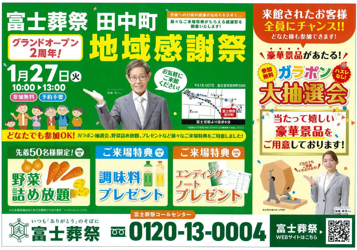 【オープン2周年!地域感謝祭】開催! 富士葬祭 田中町(富士宮市)