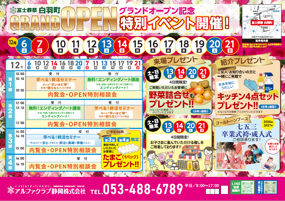 【グランドオープンイベント】開催! 富士葬祭 白羽町(浜松市)
